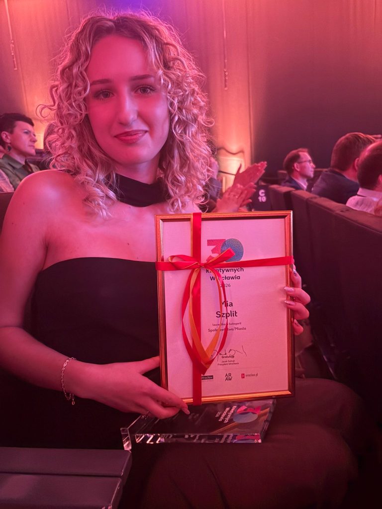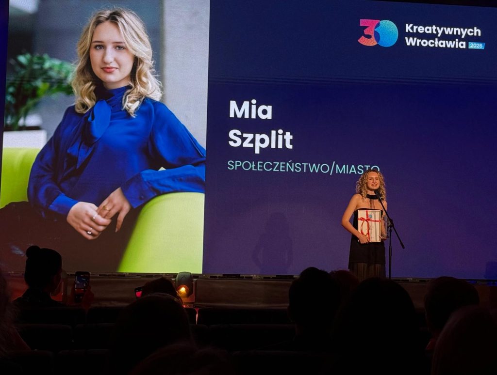 15 kwietnia 2026 r. nasza uczennica Mia Szplit z klasy 4DP4 odebrała prestiżową nagrodę „30 Kreatywnych Wrocławia”.