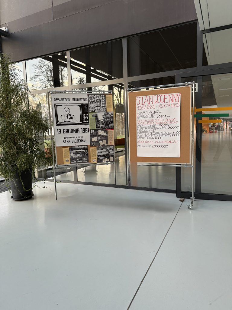 Klasa 1A pod opieką wychowawczyni – pani Elżbiety Popławskiej-Cibickiej podjęła się przygotowania obchodów Dnia Pamięci Ofiar Stanu Wojennego. Uczniowie przygotowali tablice, na których znalazły się m.in. statystyki ofiar stanu wojennego czy twórczość Barbary Sadowskiej – matki zamordowanego przez funkcjonariuszy MO Grzegorza Przemyka. Zorganizowany został konkurs recytatorski upamiętniający twórczość Zbigniewa Herberta. Na przerwach można było zapoznać się z biografią Przemysława Gintrowskiego oraz posłuchać utworów z jego albumu pt.: ,,Pamiątki”.
