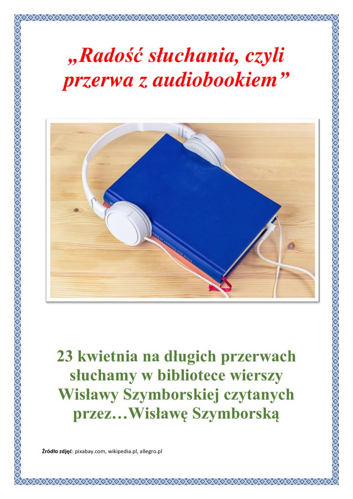 📅 23 kwietnia podczas długich przerw zapraszamy do biblioteki na wyjątkowe spotkanie z poezją – posłuchamy wierszy Wisławy Szymborskiej czytanych przez samą autorkę.
